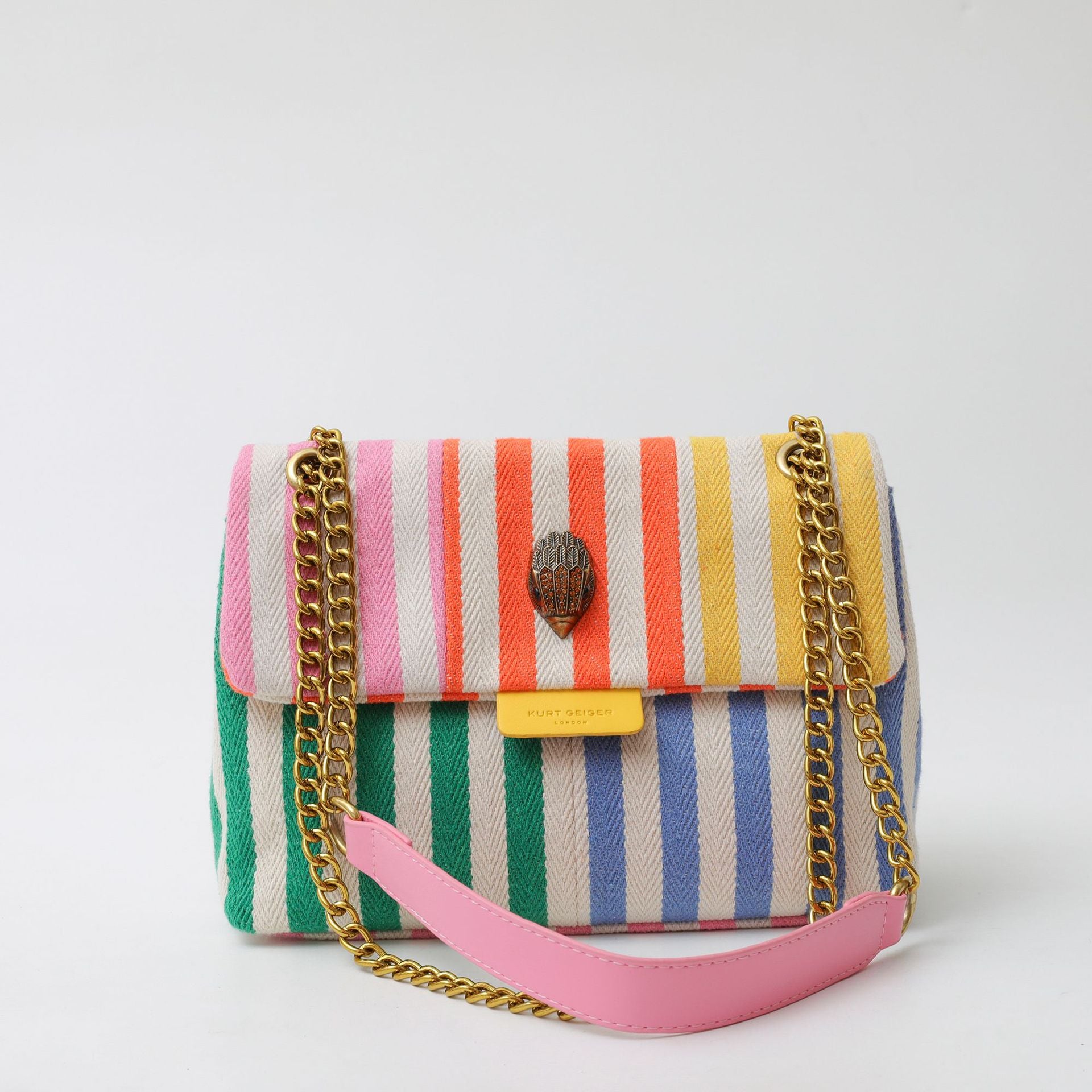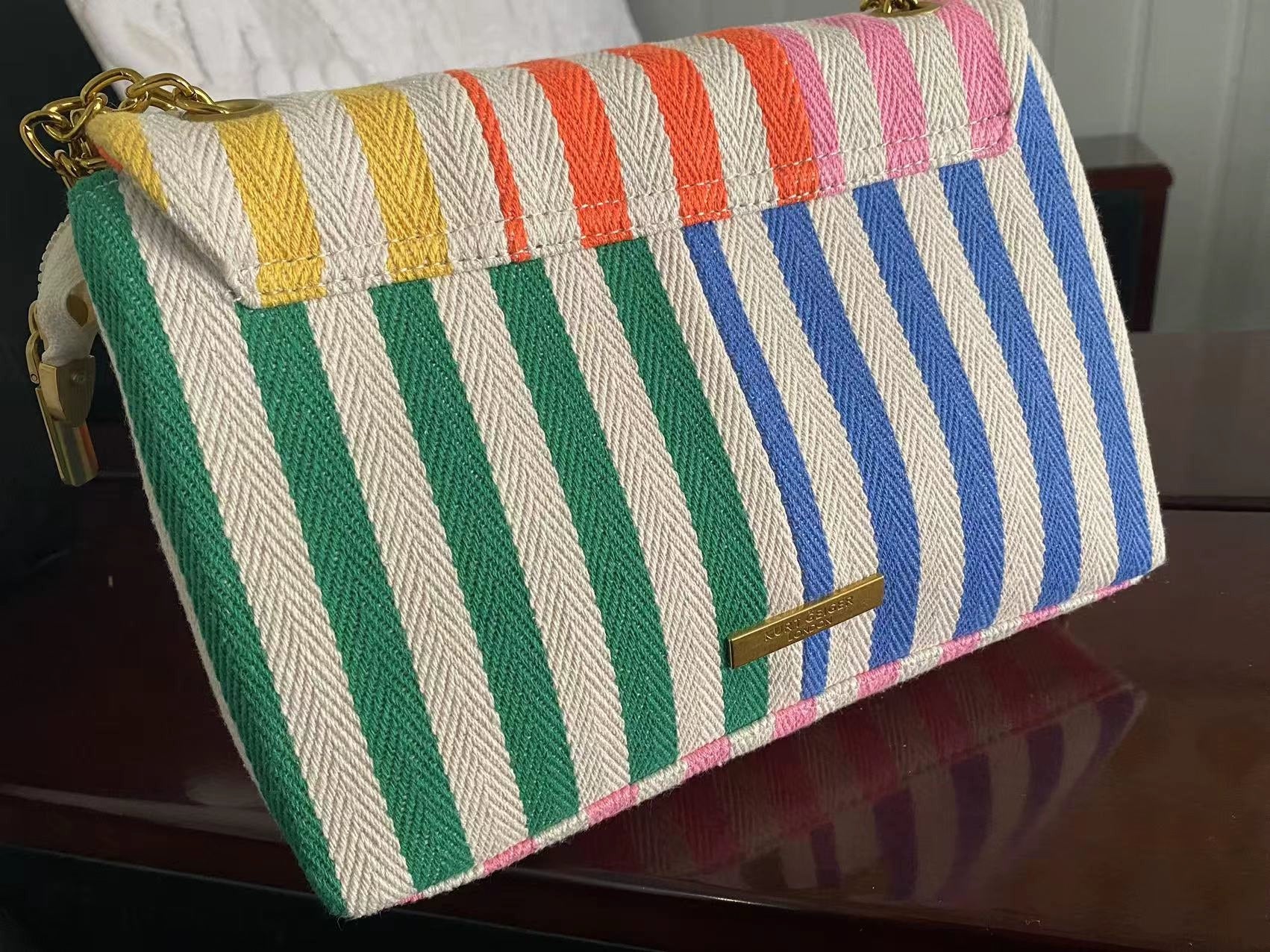 Elevate your style with our Color Block Striped Canvas Mini Bag. The striking striped pattern and modern color-blocking give this mini bag a fashion-forward edge. With its versatile chain strap, you can wear it as a shoulder bag or crossbody. Made from durable canvas, it's the perfect accessory for any occasion.